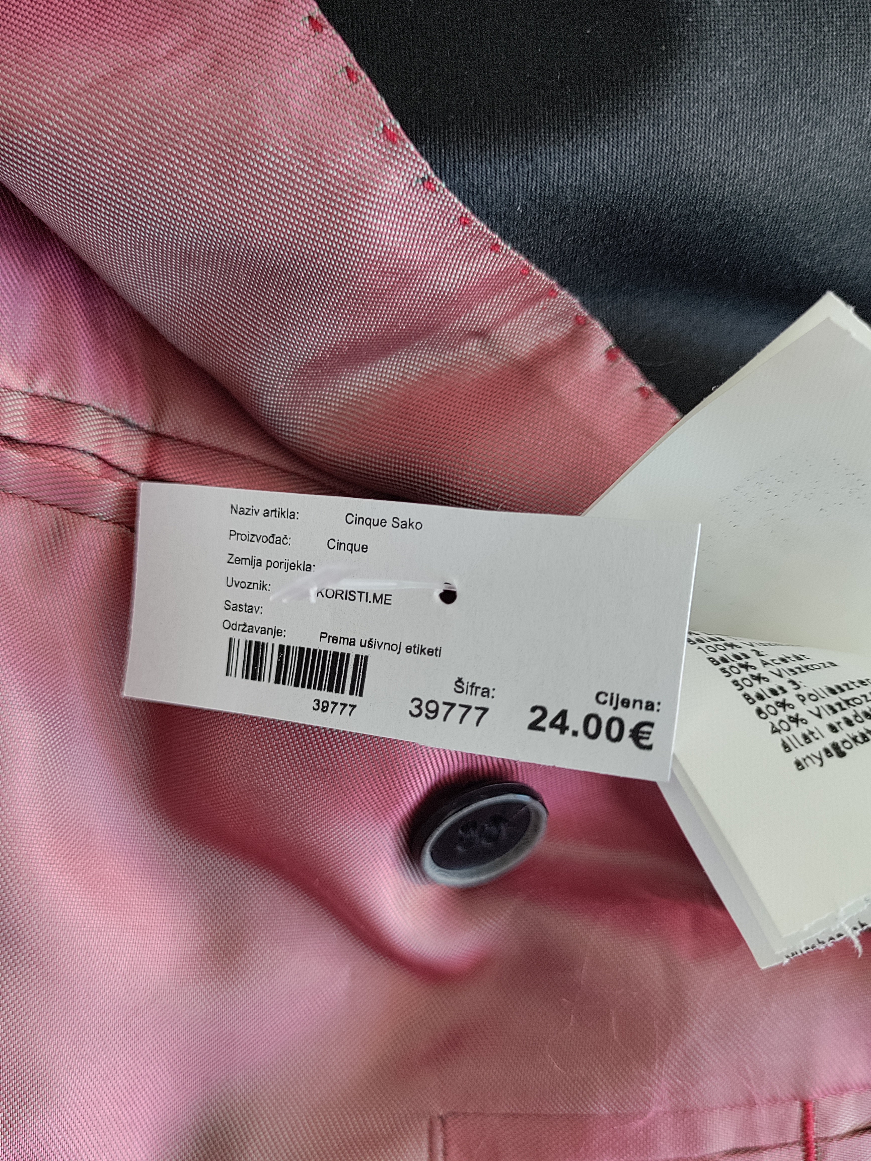 Materijal 54% poliester, 42% pamuk, 4% elastin