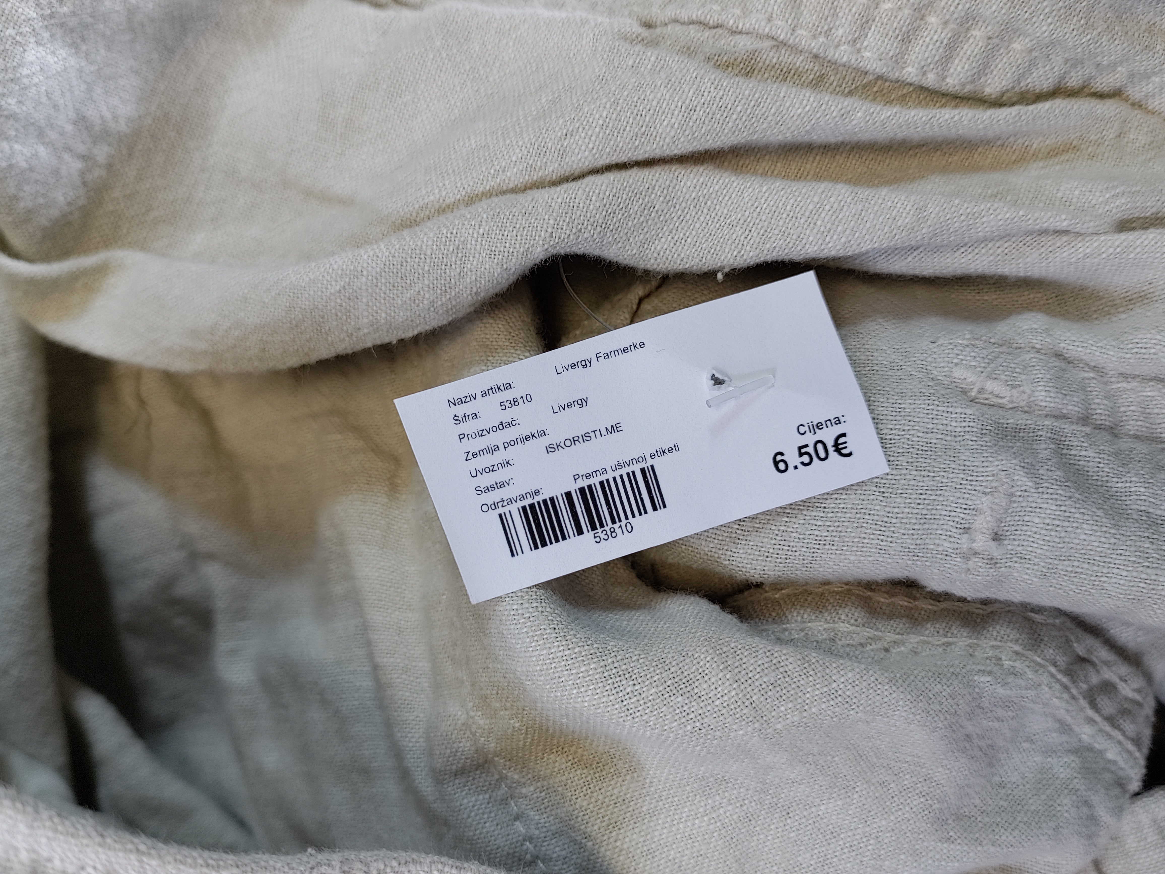 Materijal:55% pamuk, 45% lan