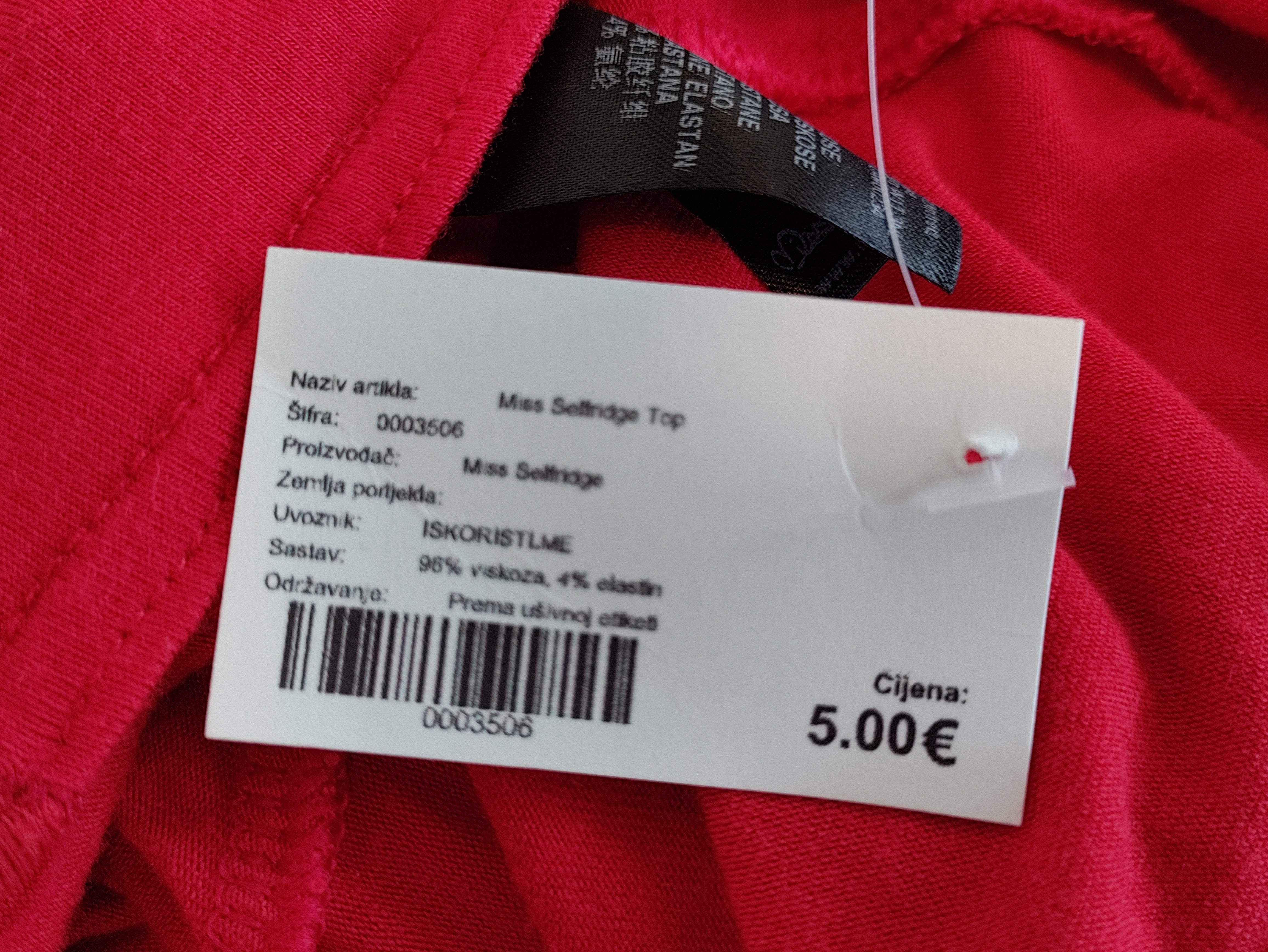 Materijal: 96% viskoza, 4% elastin